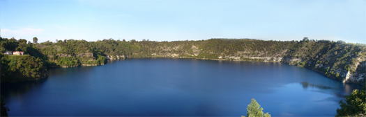 In Mount Gambier fahren wir zum Blue Lake. Die ca. 4 km Strecke um den See legen