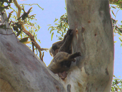 Eukalyptusbäumen nach Koalas. Wir wollen schon aufgeben, als Melanie plötzlich oben