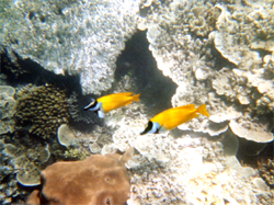 Bei sehr klarem Wasser sehen wir viele bunte Fische und schöne Korallen.