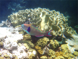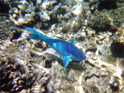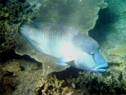 Besonders auffallend ist ein sehr großer Napoleon Fisch, mit dem man sich