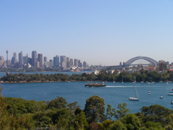 mit der Skyline, Oper und Harbour Bridge. Besonders beim Bush Amphitheatre,