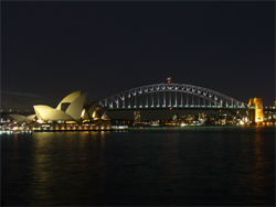 wo wir Fotos von der beleuchteten Oper und Harbour Bridge machen.