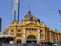Entlang der Flinders Street geht es vorbei an Federation Square,