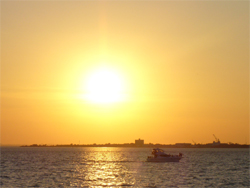 Sonnenuntergang an und gehen ein wenig an der Strandpromenade spazieren.